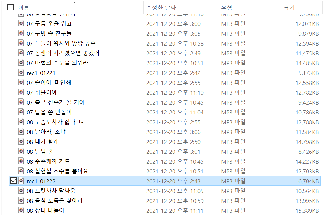 세 번째, 추출한 음원을 오디오 렉 스티커 번호에 맞게 파일명을 변환시켜준다.